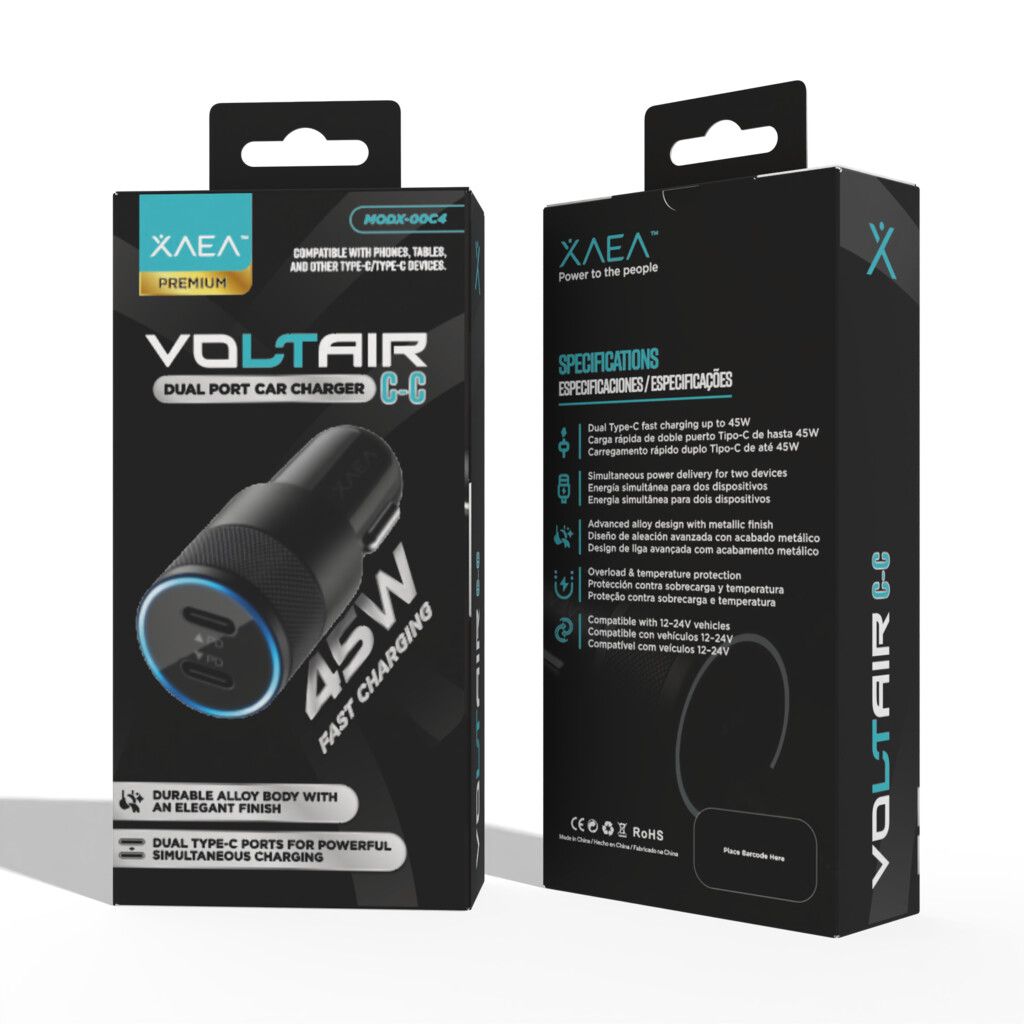 ADAPTADOR-CARGADOR 12V VOLTAIR MODX-517 - 3A - 1USB + 1TC - XAEA - VERDE