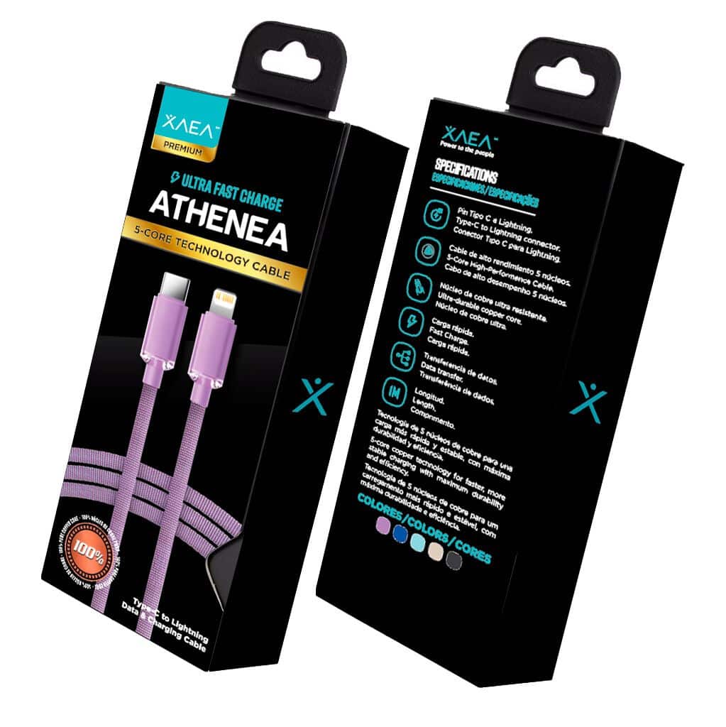 El cable ATHENEA ha sido diseñado para ofrecer una experiencia de carga y transferencia de datos de alto nivel. Su composición 100% cobre garantiza una conductividad óptima, menor pérdida de energía y mayor velocidad de transmisión. Además, proporciona mayor durabilidad y resistencia al calor, convirtiéndolo en una opción confiable y segura para el uso diario.