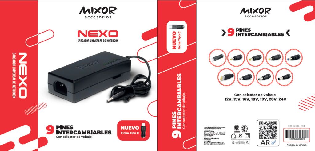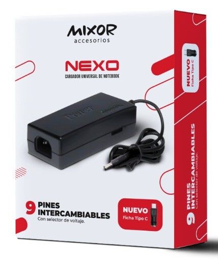 CARGADOR DE NOTEBOOK MODM-300-NEXO-C/SELECTOR VOLTAJE 9 PINES – MIXOR – NEGRO