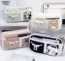 CARTUCHERA DOBLE DE TELA CON STICKER MODV-00BT - VARIOS - BLANCO