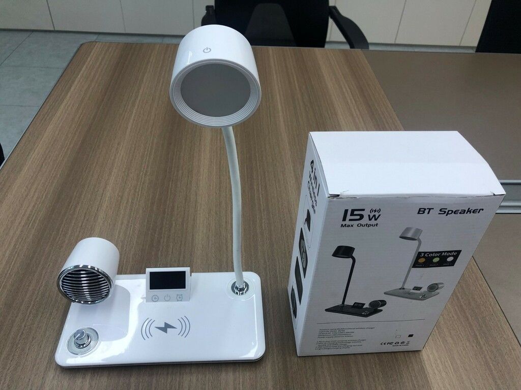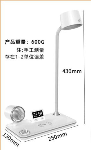 Carga inalámbrica de teléfono inteligente de 1.15W (vatios) 2. Material: ABS/PP – 2. Reloj despertador / lámpara de escritorio de protección ocular de audio Bluetooth – 3. Potencia del LED: 5W 4. Temperatura de color: blanco cálido 2700K / blanco frío 6500K / luminiscencia mixta de colores fríos y cálidos 5. Luz de ajuste de tres velocidades 6. Voltaje: DC5.0 – 5.2