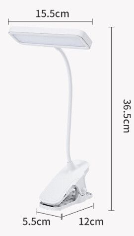 Lampara Led, altamente flexible, clip con apertura hasta 65mm fabricada en plastico ABS y PP 8 niveles de ajuste de brillo / Luz Calida / Luz Blanca Alimentacion por USB / Alimentacion 5v-1a / Bateria interna 800ha, 3,2W, 8 luces blancas, 8 luces cálidas Disponible en color Blanco