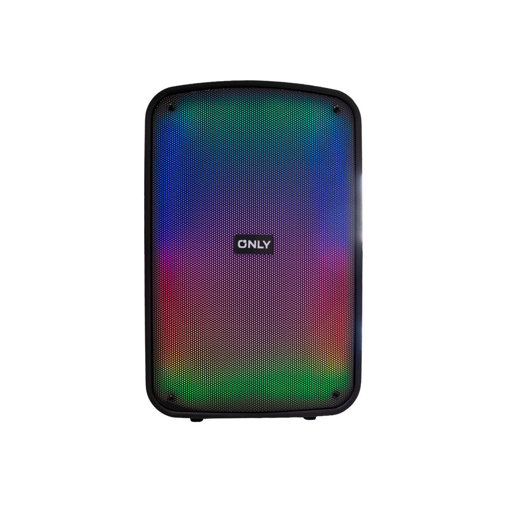 Función: Woofer de 8 ””x1 / 8W (RMS) / 3 perillas / RGB FLAME LED / Batería de litio recargable 3.7V 2400MAH TF / USB / Mic in / AUX / BT / FM / TWS Accesorios: Manual / Cable USB / Control remoto / Micrófono inalámbrico