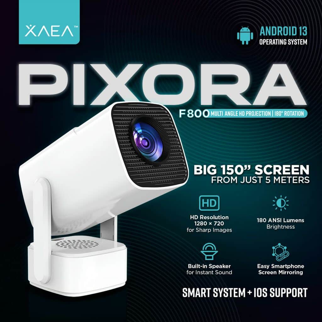 El proyector portátil F800 transforma cualquier espacio en una sala de cine. Compatible con iOS y apps personalizables, ofrece resolución HD (720p), 180 lúmenes ANSI y pantalla de hasta 150”. Su lámpara LED garantiza 30.000hs de uso, y con solo 1m de distancia ya proyecta en grande. Liviano, versátil y con control remoto incluido, es ideal para entretenimiento en casa o presentaciones. Disponible en blanco o negro.