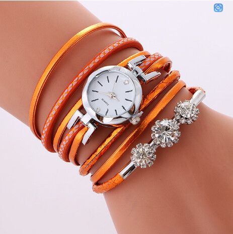 Reloj de quarzo, con pantalla de cristal, malla en poliuretano simil cuero (7mm), Diametro del Dial 25mm, longitud de malla 40 cm, Colores disponibles: naranja, Rosa, Azul, Plata, Champagne, Negro, kit fraccionable en packs x 57