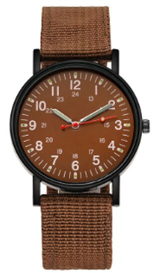 Reloj de pulsera Clasico de cuarzo, diametro del Dial 40mm, Iluminacion nocturna, Caja interna de plastico y acero inoxidable, pantalla de cristal, peso 40 grs. malla en tela+hebilla en acero inoxidable, Presentacion en bolsa individual, KIT dividido en packs x 52