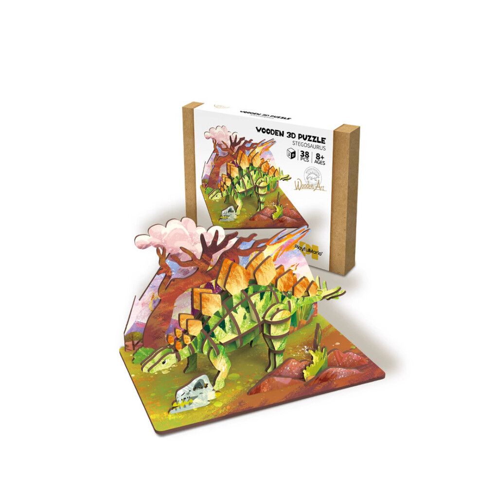 Juego de rompecabezas 3D en madera, con motivos de dinosaurios con paisajes, disponible en 6 modelos diferentes, Pterodactilo, Estegosaurio, Lilophosaurus, Plesiosaurio, Triceratops y Brachiosaurus, contienen entre 35 y 46 piezas, sugerido para niños +11