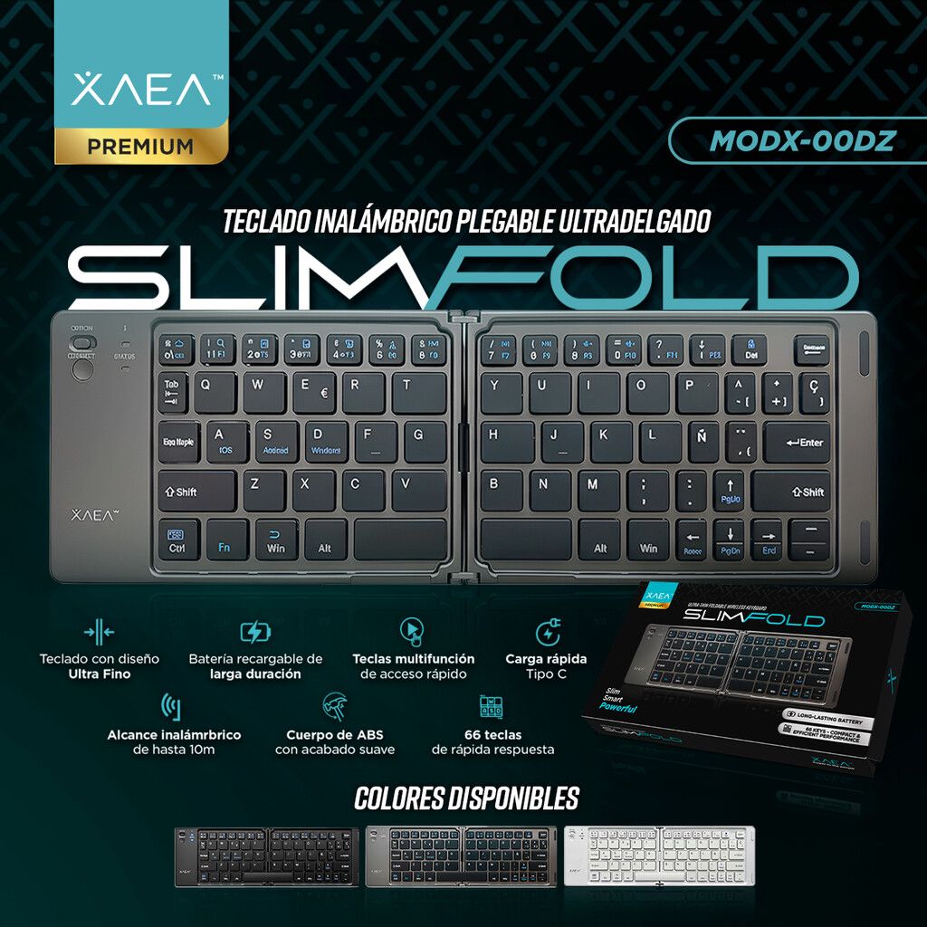 El Teclado Plegable UltraSlim es la solución perfecta para quienes buscan portabilidad y funcionalidad. Con diseño ultrafino y conexión Bluetooth de hasta 10 metros de alcance, ofrece comodidad en cualquier lugar. Su batería recargable de 150mAh, con carga completa en solo 2 horas, garantiza hasta 20 días de uso. Incorpora 66 teclas y teclas multifunción que facilitan el trabajo diario. Fabricado en resistente material ABS, combina durabilidad y estilo en un formato compacto y elegante.