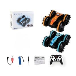 Auto Acrobata Todo Terreno (Asfalto-Arena) tipo 1203A, a control remoto, traccion delantera y trasera, giro 360º, Sistema de escape en spray con iluminacion, Luces y sonido, Bateria de litio con proteccion 14500, 500 mAh, 3,7v, tiempo de carga: 60 min, tiempo de uso: 45 min aprox, Timpo de pulverizador: 15 min. aprox. distancia del mando hasta 50 metros, colores disponibles,: Azul