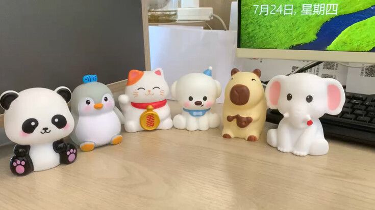 Luz de tacto suave en vinilo Conejo, Oso, Oso rojo, Oso azul de vinilo con ajuste de tres velocidades, fija azul, fija amarilla, parpadeo. Presentacion en bolsita individual